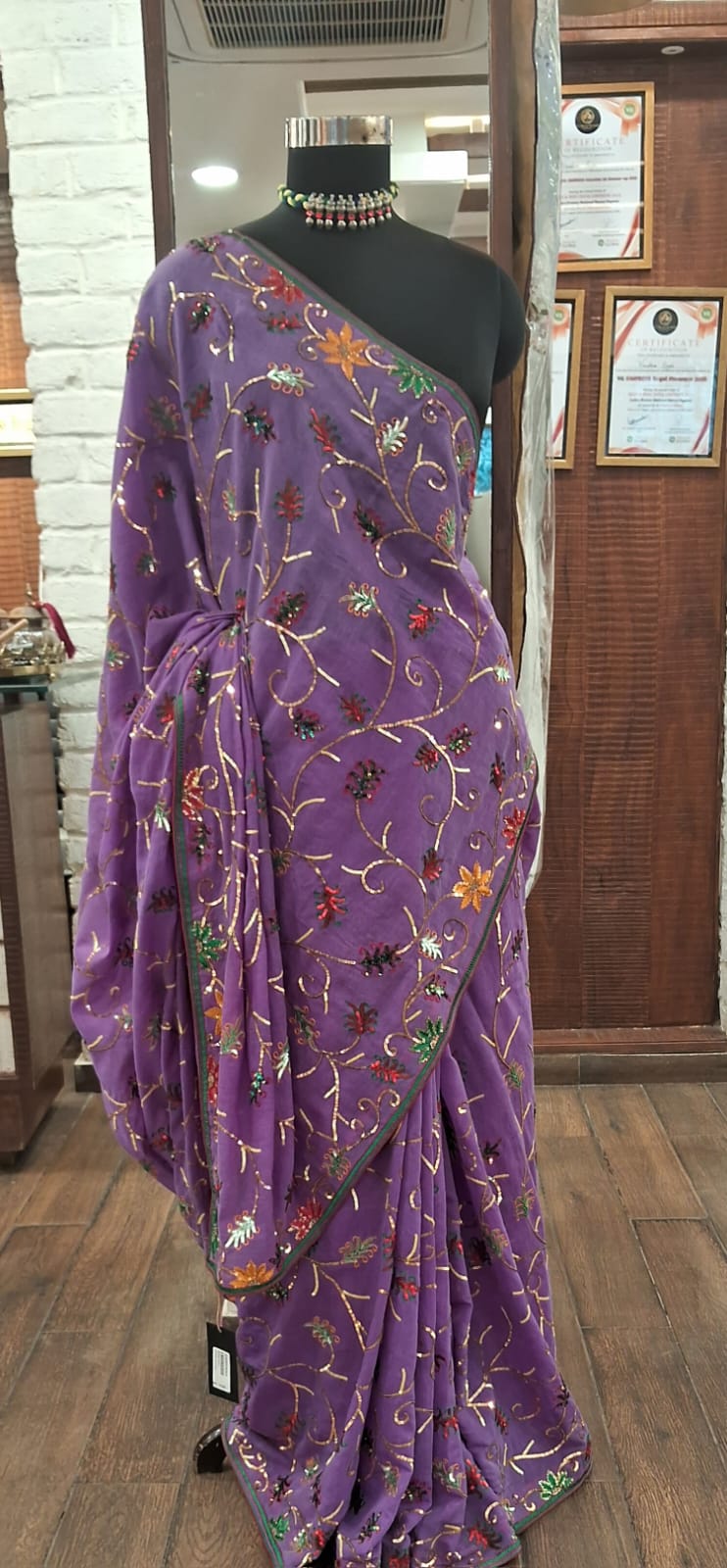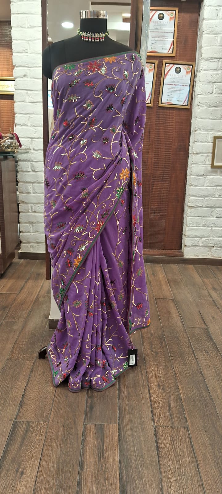 Product details – cotton silk saree with blouse fabric Care instructions – dry cleaning only Know your Product – cotton silk saree with all over jaal sequence work plan blouse fabric Country origin – India Colour – purple