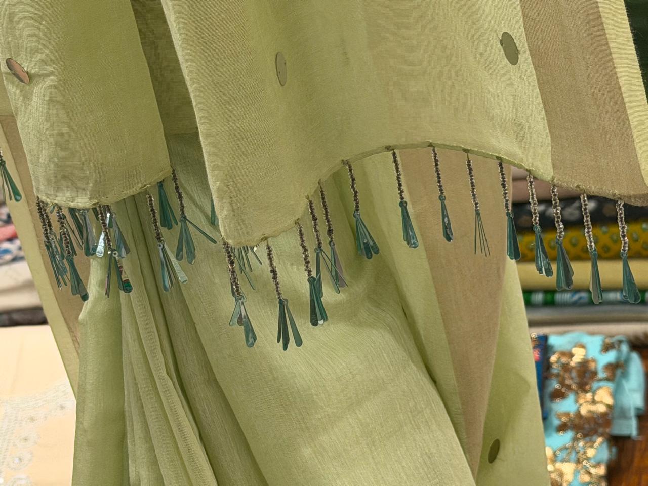 Know your Product – cotton silk saree with zari stripes with tassel blouse with hand work