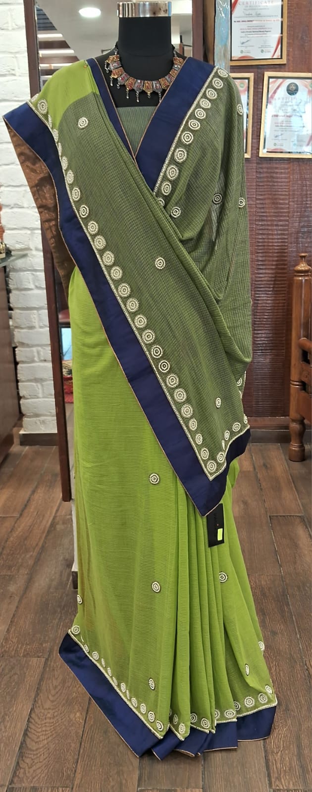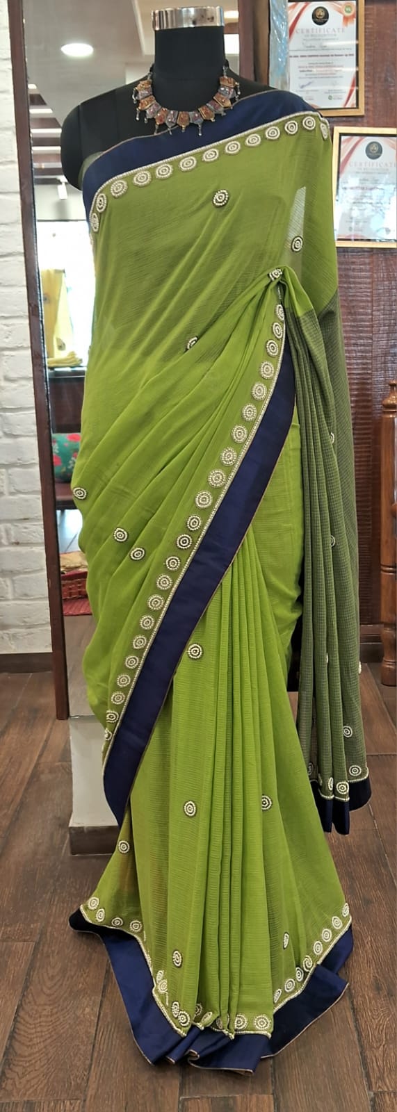 Know your Product – cotton mulmul saree with pual work all over with embroidered blouse fabric