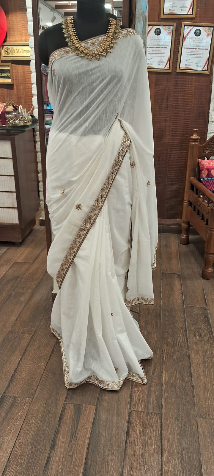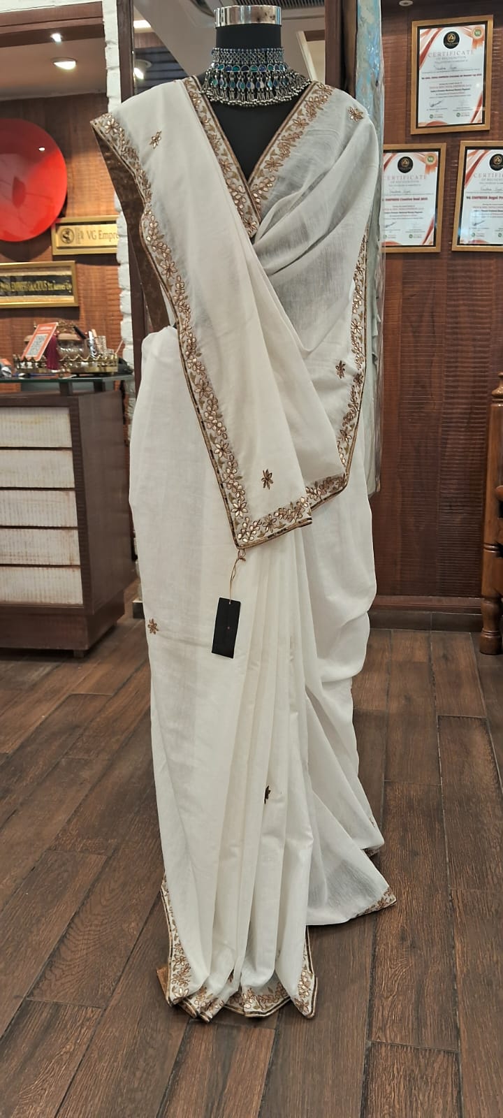 Product details – organic tussar silk saree with blouse fabric Care instructions – dry cleaning only Know your Product- organic tussar silk saree with gotta patti hand work Country origin – India Colour – white