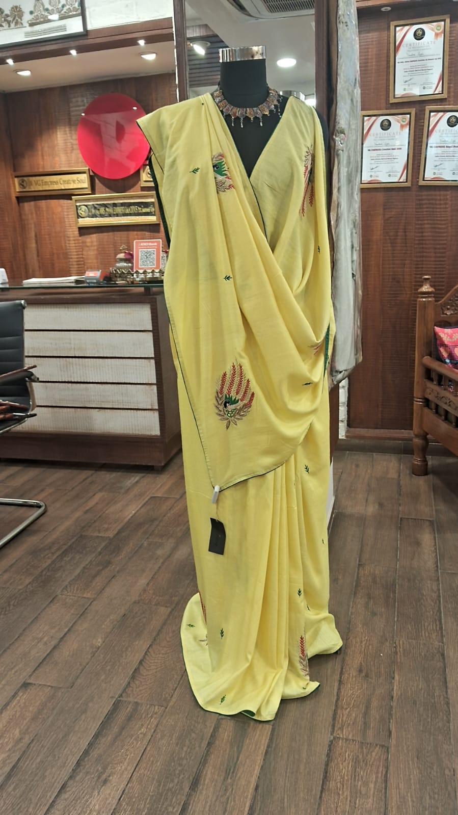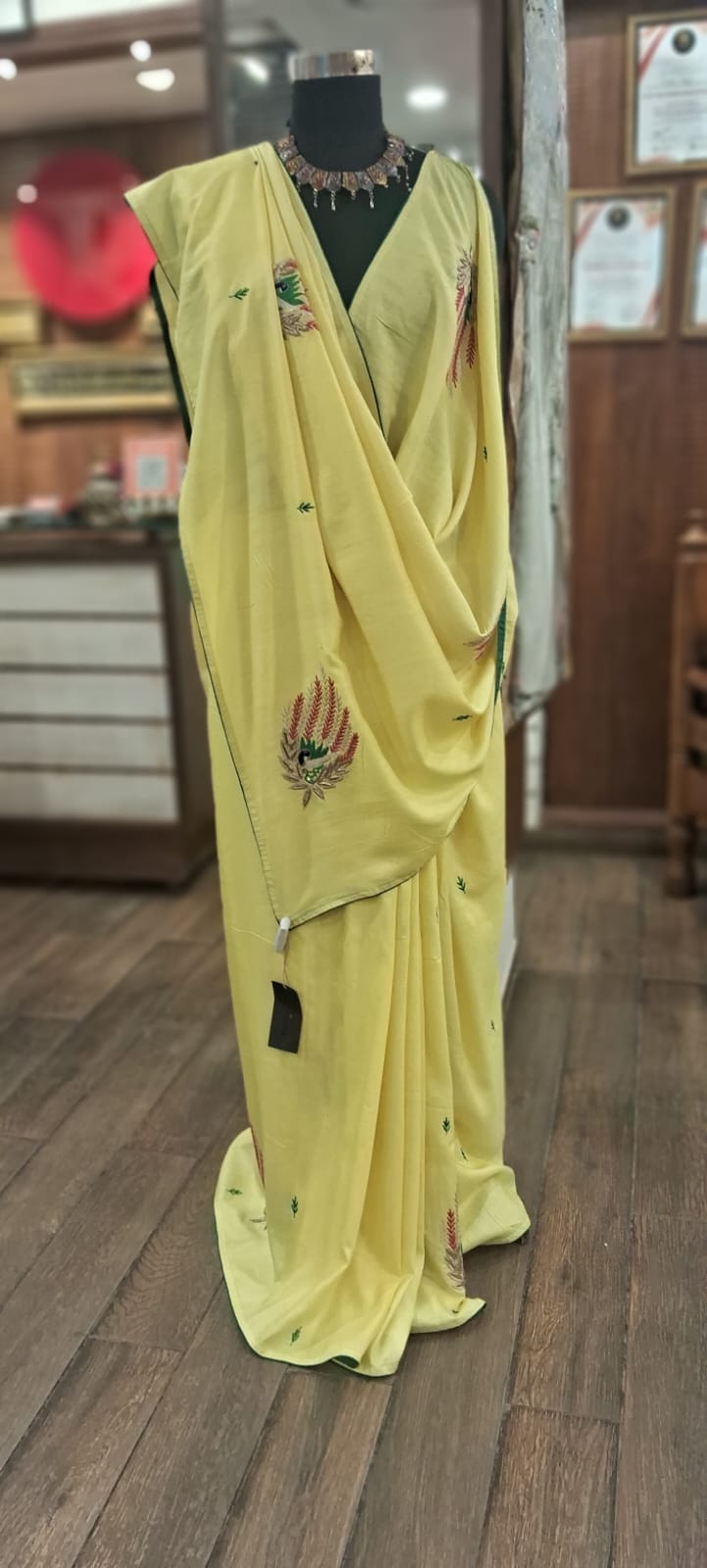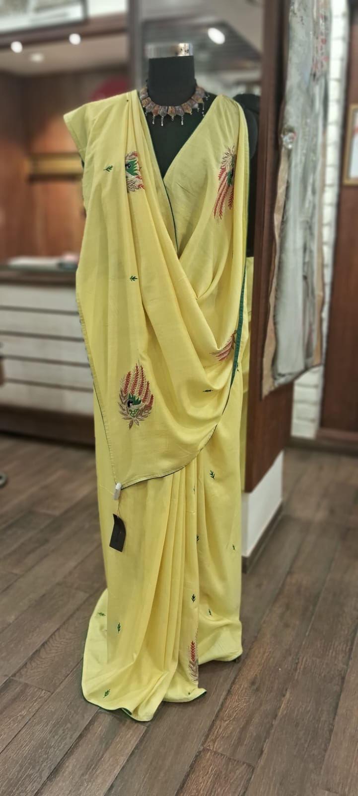 Product details – silk saree with blouse fabric Care instructions – dry cleaning only Know your Product – Silk saree with ari and zardozi work Country origin – India Colour – yellow